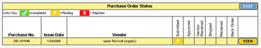 a vendor's purchase orders and shows whether